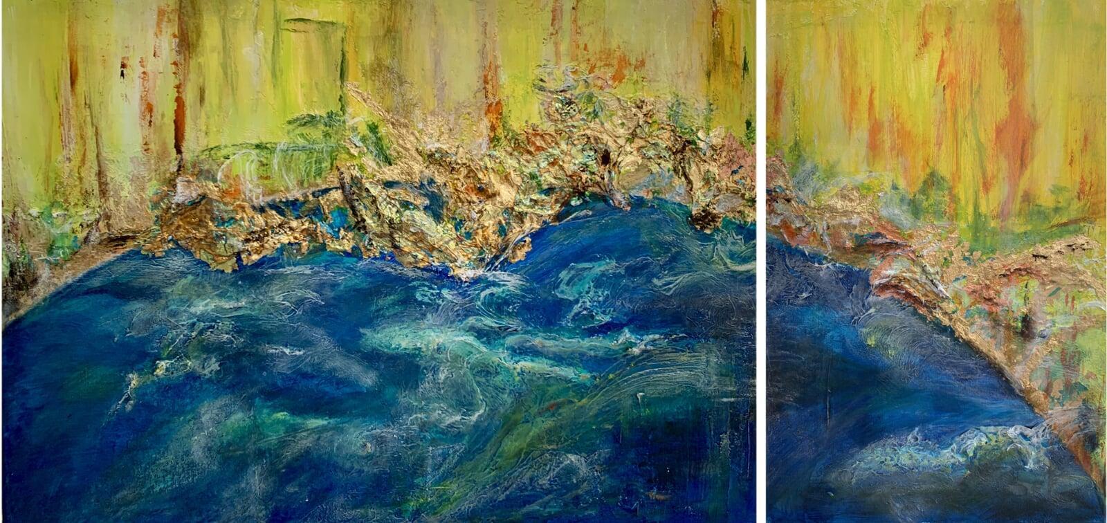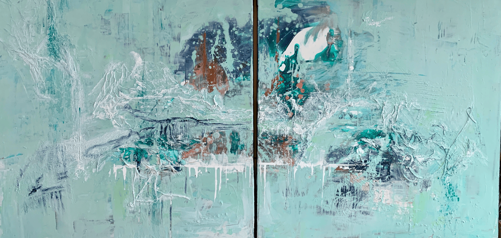 Mixed-Media, Acryl auf Leinwand, 2-teilig,