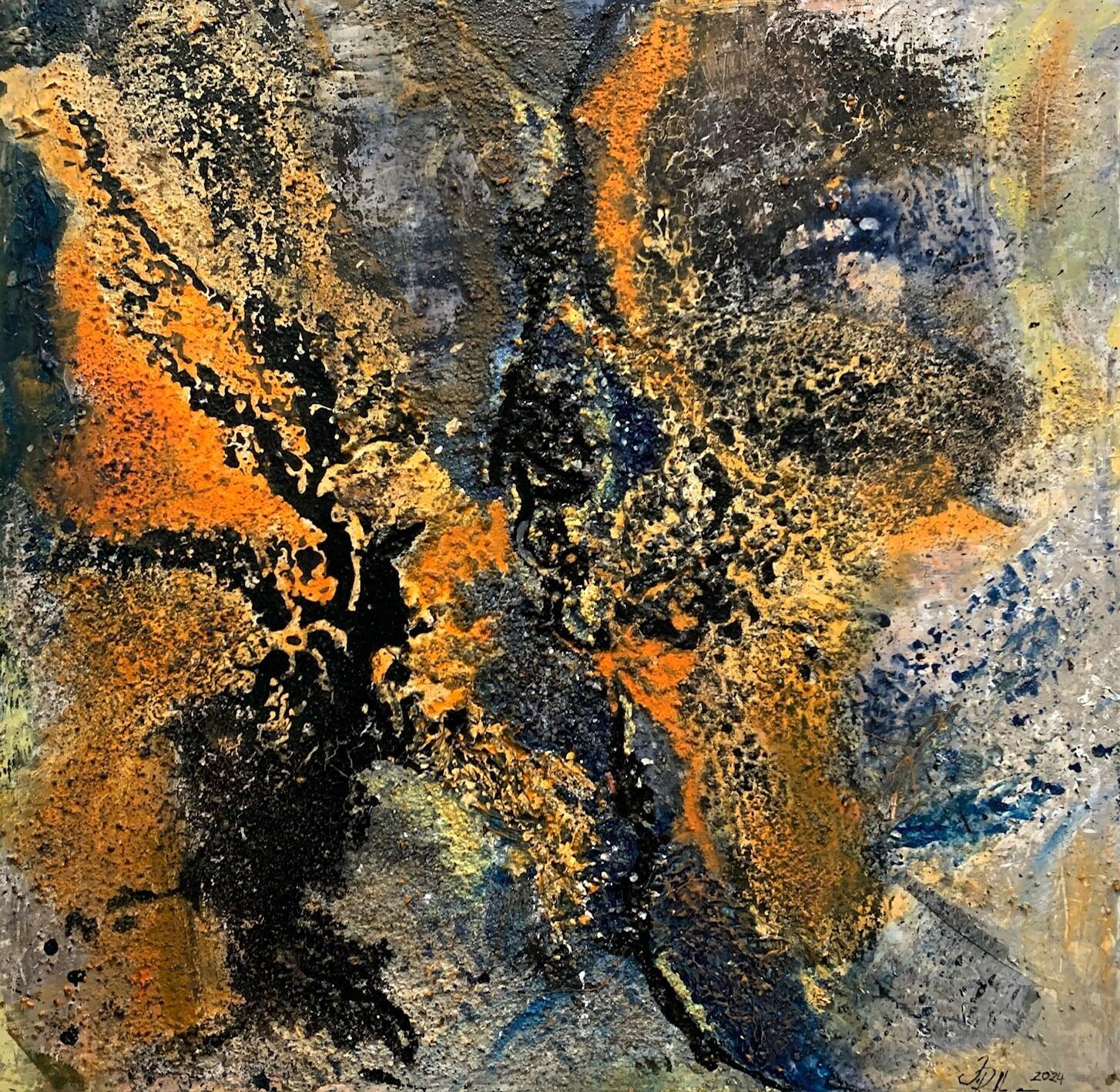 40 x 40 x 4,5cm, Mixed-Media mit Acryl, Leinwand auf extra tiefem schwarzen Keilrahmen